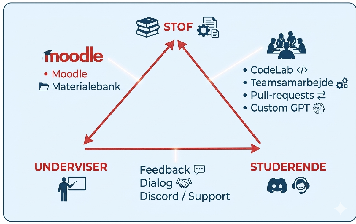Da jeg begyndte som underviser på Datamatikeruddannelsen i 2016, havde jeg ikke meget erfaring med undervisning i de konkrete emner, som uddannelsen består af. Jeg havde erfaring fra andre undervisningssammenhænge, bl.a. fra et bifagstudium i idræt. Men en ting er undervisningserfaring og fagdidaktik fra idrættens verden. En anden ting er at kunne overføre det til et helt andet fag i en ny organisatorisk kontekst.