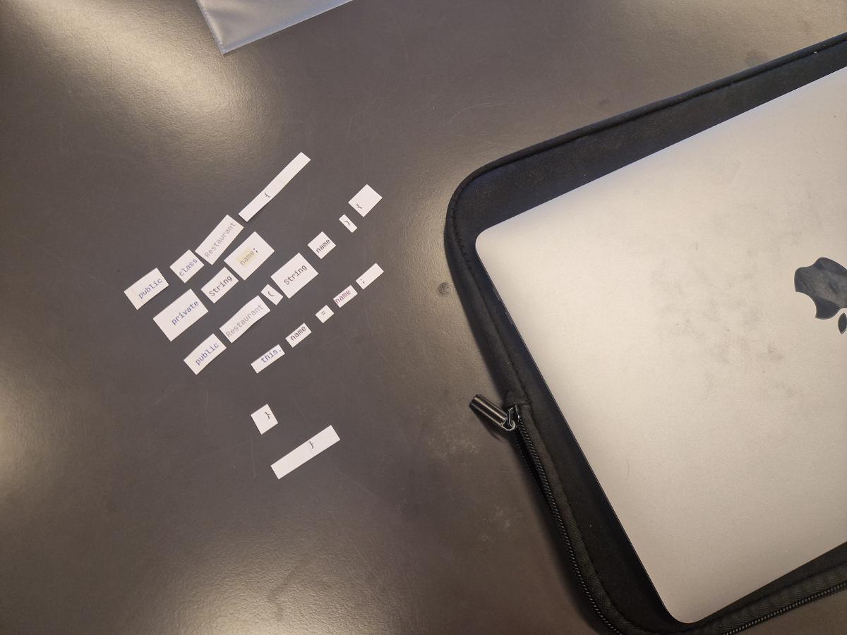 - Grupperne får en kuvert med kodestykker fra én klasse og skal lægge dem i den rigtige rækkefølge.